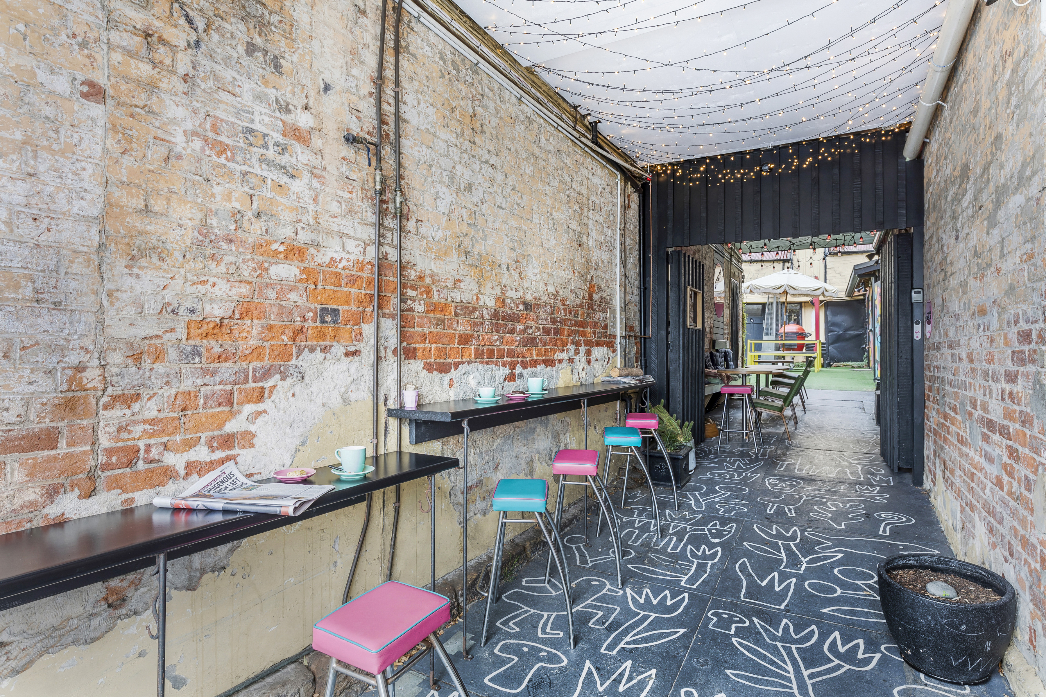 has capacity for up to 60 patrons inside and out with several separate zones to enjoy from the cozy and private indoor cafe to the licensed beer garden at the rear. The cafe has been covered top to bottom with artwork by popular local artist, Tom O’Hearn creating a one-of-a-kind space.
