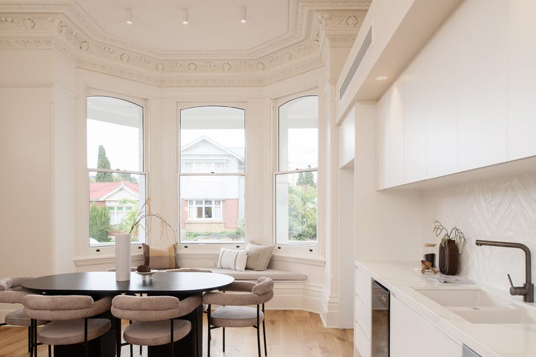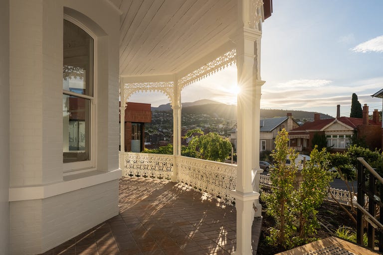 Ingomar Residences encompasses the sensitive yet luxurious conversion of the historic homestead into eight tailored residences. The former grounds at the rear of the property offer secure parking, with eighteen architecturally-designed residences lofted above, delivering absorbing views toward the city and Hobart waterfront beyond.