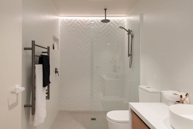 The residences are accessed by state‑of‑the‑art technology including a digitally-controlled access system. Your front door is available via lift access from the carpark. The latest in technology extends to controlling your under‑tile heating and towel rails in the lux fully-tiled bathrooms as well as keyless/remote entry.