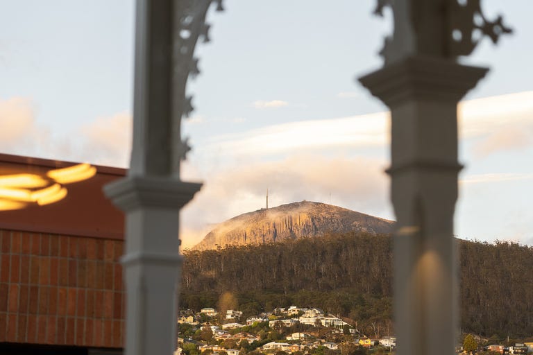A fully integrated kitchen with European appliances sets a luxurious tone, while the wraparound terrace offers serene views of Kunanyi/Mount Wellington creating a perfect backdrop for outdoor entertaining or quiet relaxation.